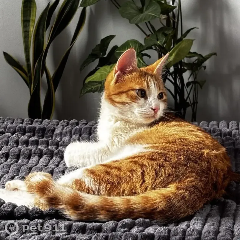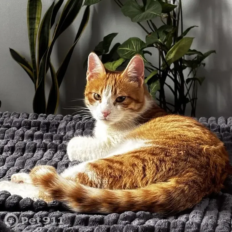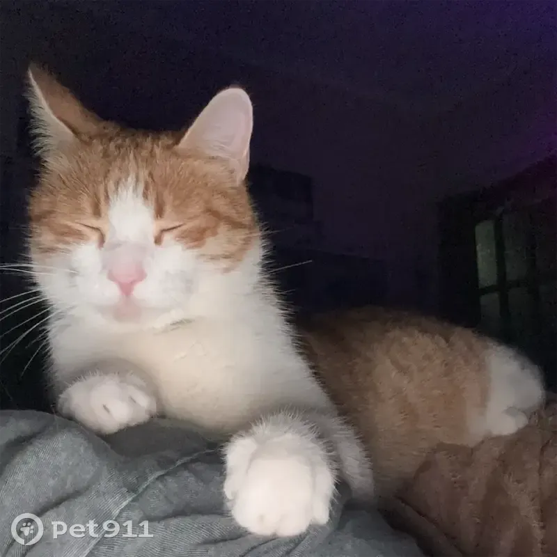 Котик среднего телосложения, рыже-белый окрас, был в синем ошейнике с рисунками в виде белых лапок, сторонится незнакомцев, отзывается на кис-кис и иногда на имя. Вечером 10.12.25 вышел гулять на улицу и не вернулся, обычно дальше ближайших домов не уходил.