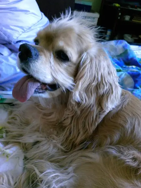 Коккер, кобель, есть ошейник.