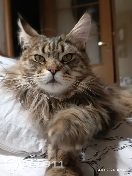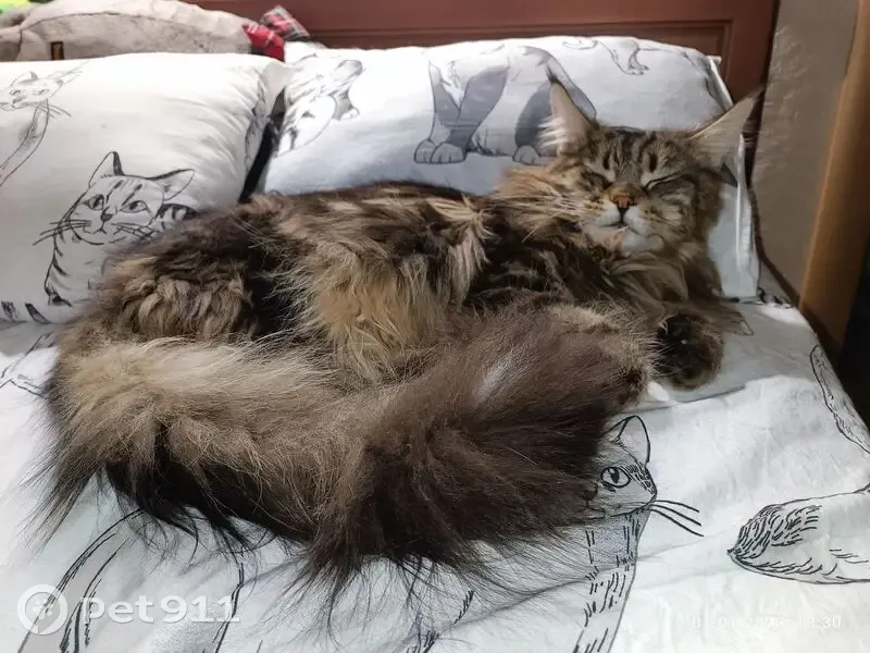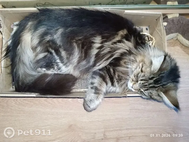 13.02.2026 пропал кот породы мейн-кун. Окрас серый в крупную чёрную полоску. Кот на специальном питании из-за проблем с кишечником.