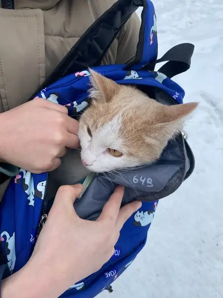 От головы до конца хвоста спинка вся рыжая. Возле носика рыжее пятнышко. Мальчишка наш очень добрый.