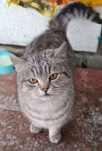 Молодой котик, окрас серый в полосочку, грудка светлее, на груди полосочки как ожерелье, слегка приплюснутая мордочка, небольшой хвост. Стал приходить на дачу (СНП Спутник). Подкармливали, искали хозяев. Когда наступили холода, котик стал жить на чердаке дачи. Очень ласковый, громко мурлычет. Спокойный, но любит и поиграть. Но пока пугливый, боится шума. Явно домашний, ест все, что дают, ест очень аккуратно. Оставили бы себе, но своя кошка категорически его не признает, гоняет, домой не пускает! Надеемся, что или найдется хозяин, или кто-то захочет себе взять.