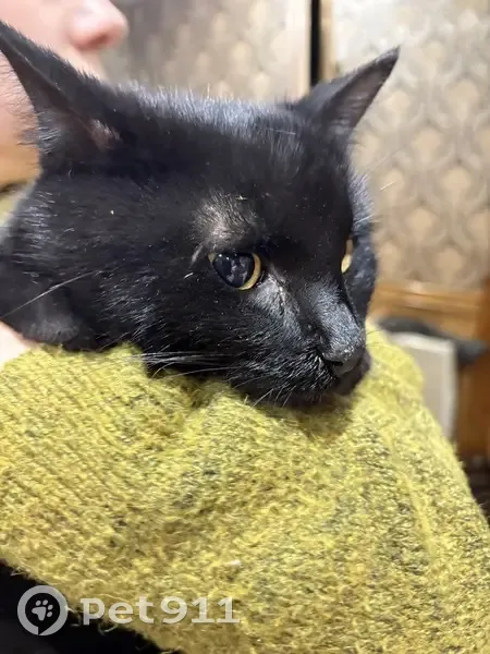 Найден кот, улица Смургиса, 12, городской округ Липецк - чёрный с жёлтыми глазами