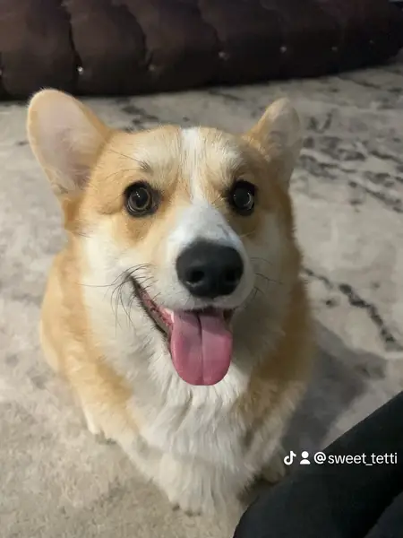 Корги без хвоста, бегала одна в лесу около 14 школы, район Опытной. К другим собакам относится с осторожностью, к людям общительна. Была без ошейника.
