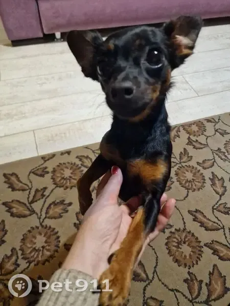 Сбежала собака породы той-терьер. Она чёрного цвета с коричневыми оттенками, а также имеет поводок. Пол — сучка Номер: