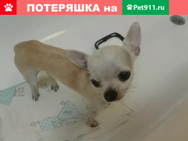 На фотографии где потерянный чихуа хуа с хозяйкой на руках - у собаки ухо левое темное. У нашего найденыша розовое. Может это и не он. Хотя найден как раз на Космонавтов. Но вид, конечно, такой, будто он давно по улице бегает
