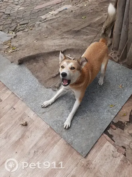 окрас рыжий с белым,убежал,т. К напала чужая...