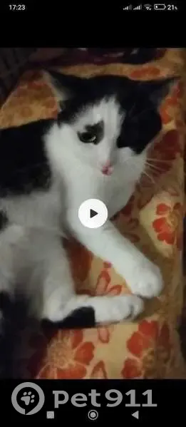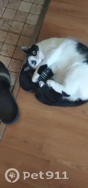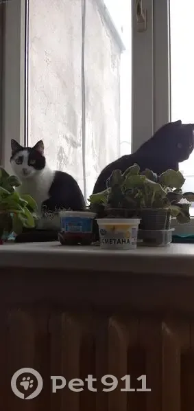 Бело-чёрная, некрупная, любопытная и доверчивая, всегда жила в домашних условиях, выпрыгнула из окна