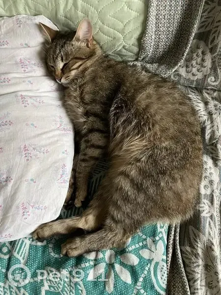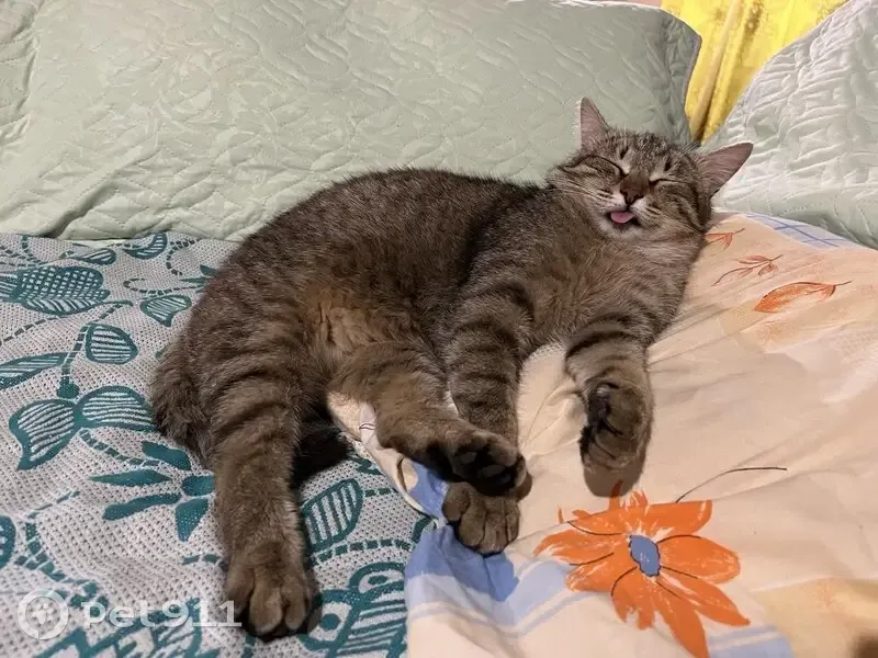 Пестрый кот без ошейника, затемненная обводка вокруг глаз и на нижних сторонах лап. Глаза желтовато-зеленые. Не особо контактный, пропал в районе 20:00 на улице Цементников