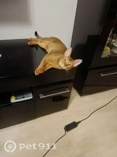 Абиссинская кошка убежала вместе с поводком, пристегнутом к чёрной шлейке, окрас дикий (рыжий) , кошке 2 года, кличка Трисс. Отзывается на имя.