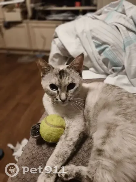 Основной цвет шерсти светло-кремовый. Уши, мордочка, лапки и хвост пепельно-серые с легкой полосатостью. Отличительная примета- не большое темное пятнышко между усами. Глаза голубые.