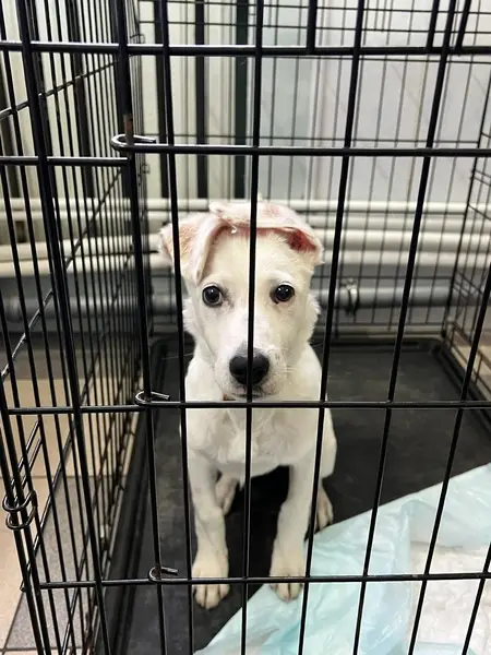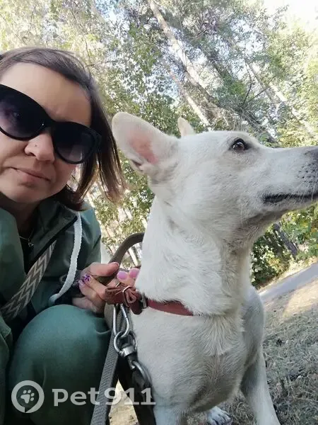 Хозяину этой собаки стало плохо в автобусе , потерял сознание . Ему вызвали скорую . Скорая забрала . А собаку , я так понимаю выпроводили из автобуса или ее кто-то взял себе . Окрас белый , короткошёрстный. Передняя лапа вывихнула . Мог быть одет в желетке .