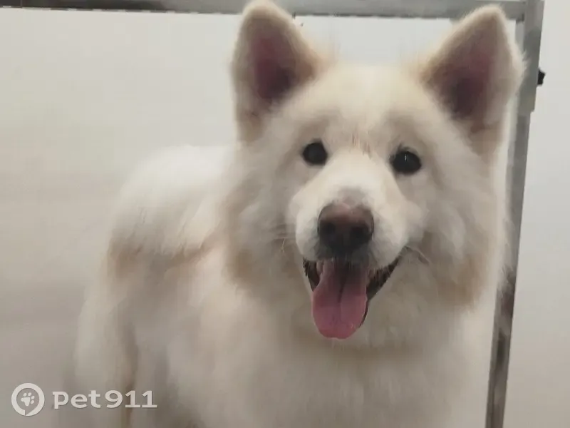 Потерялась собака, похожа на самоеда, очень пушистая, белая, к людям относится осторожно, может отзываться на клички Миша или Сиби, среднего размера, примерно по колено