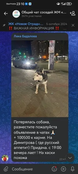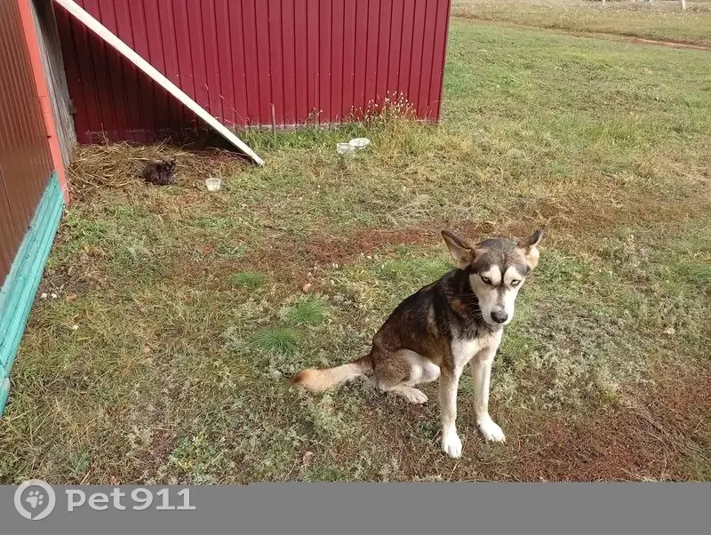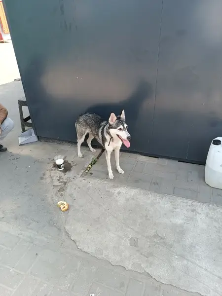 Молодой кобель до года, похож на помесь Хаски, ходит по селу. Мы здесь наездами. Собака умная, умеет давать лапу, сидеть, ласковый, с нашей сукой был дружелюбен. На нем была цепь. Или убежал, или выбросили. Голодал, аж ребра одни остались. Эти дни буду кормить, но впереди холода. Собака для частного дома, певец как все хаски. Корм оставим, соседи покормят, но взять не могут у самих по 2-3 собаки." Территориально с. Студенки Липецкой области. Центр села, ориентир "клуб"