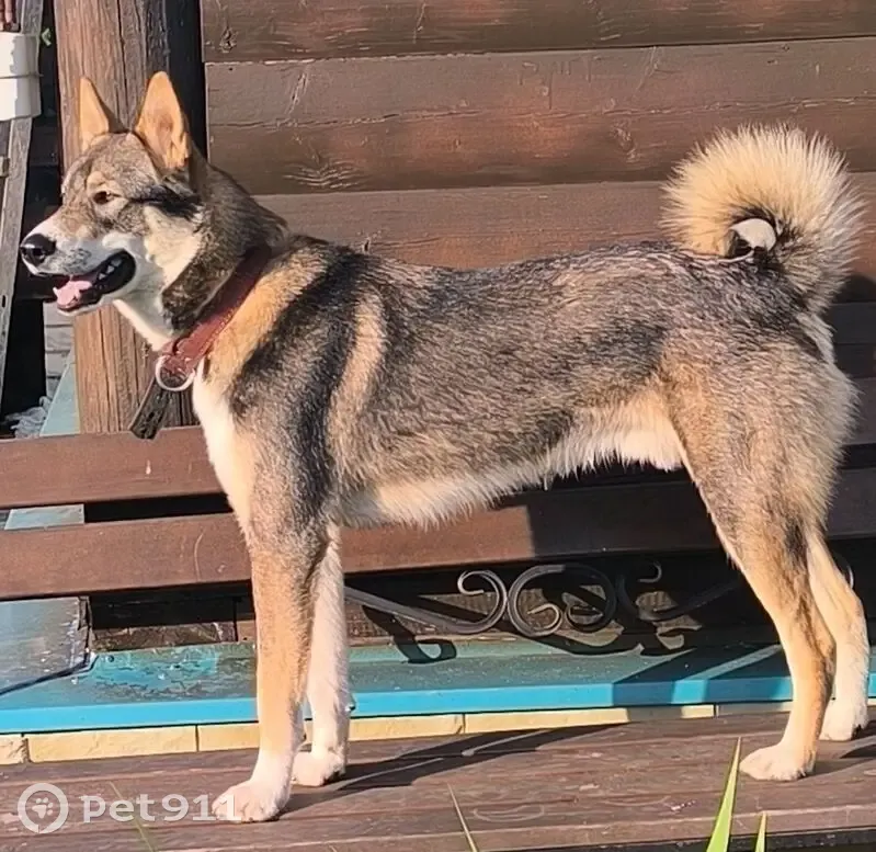 Окрас коричнево черный, грудь белая . Западно сибирская лайка. Молодой, не агрессивный, может быть сильно напуган. Охоте не обучен. Нашедшему вознаграждение 35000.