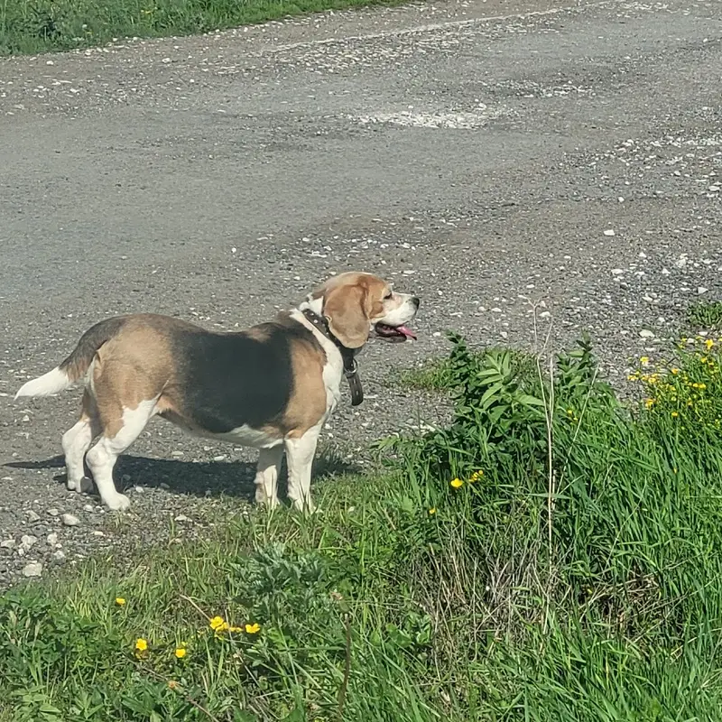 Рыже-черный с белыми лапами, пропал во время прогулки по лыжне, в районе ДНП Лугового На нем цветной широкий ошейник и должен быть еще ошейник с трекером ( трекер перестал работать)
