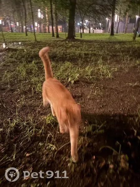 Пол не удалось рассмотреть. На коте (кошке) был потёртый ошейник пластиковый, потертый (чёрный), но в прошлом видимо был персикового или розового цвета. Кот (кошка) ласковый, охотился на кого-то на земле