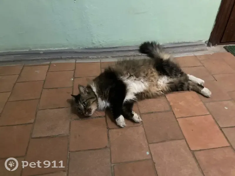 Грудка и белые носочки. Хвост пушистый. Крупная, взрослая. Пришла жить в подъезд
