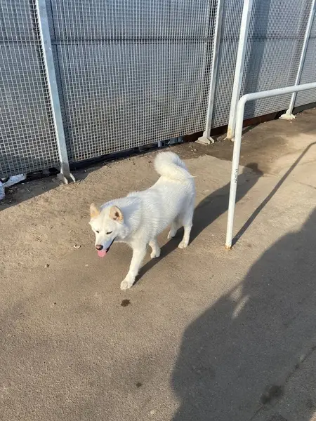 Белая/молочная Пушистая Упитанная Контактная Энергичная Активная Зимой 2020 года забрали собаку из приюта. Ей было тогда 1,5 года В полгода она сбежала из дома. Еще Полгода блуждала и попала в приют. Несколько раз убегала у нас, но всегда возвращалась. 27 июля утром убежала из дома. Сбежала через дырку в заборе.