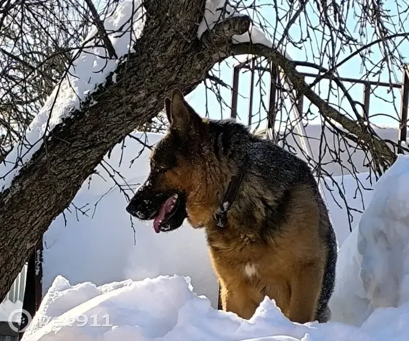 Окрас черно-рыжий, на ухе клеймо 100, 2 года и 9 месяцев, с ошейником. Вечером, по сугробу перепрыгнул через забор. Утром вышли кормить, а его уже нету.