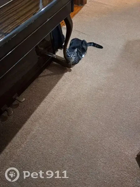 Кот , 4года. Тёмный окрас, с чёрными полосами, живот белый, часть лап белая. Пропал скорее всего днем из частного дома (обнаружила его пропажу около 19-00 после приезда с работы). Кот, домашний, кастрирован, боязливый, ласковый