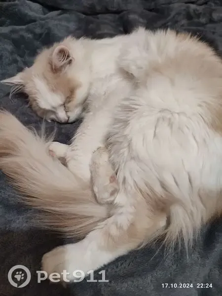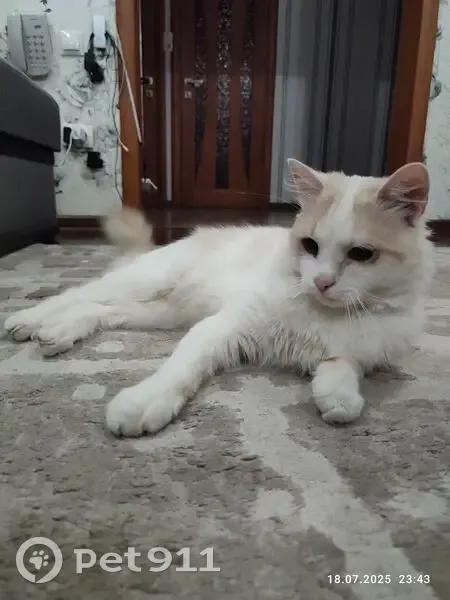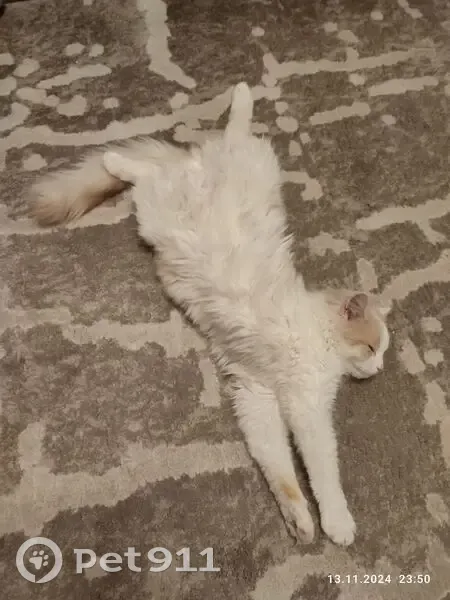 Белый с рыжеватыми пятнышками. 1 год. Игривый, ручной. Доверяет людям. Кончик хвоста переломан с раннего возраста