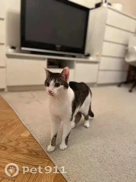 Продолжаем поиск! Кот, 2 года, крупный, лапы длинные, окрас серо - белый, на лице есть серое маленькое пятнышко, как метка. Чипирован. Убежал из дома в деревне Бережки, Подольский район, в районе дома 10.