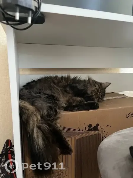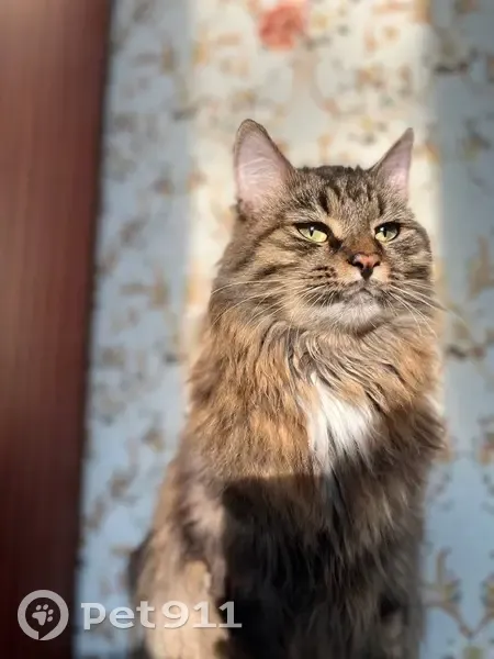 Очень пушистый хвост,с чуть рыжим подтянком ,сам по себе очень пушистый,крупненткий. Спрыгнул с пятого этажа и соседки сказали что видели как упал и он побежал в сторону соседского дома.