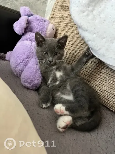 Светло-серый окрас, возраст полгода(на фото она чуть меньше), светло-бежевый ошейник (обычный от блох), вчера в час дня видели ее в последний раз, пошла гулять, до сих пор ее нет, мы живем возле дороги, но у нее нет привычки выбегать на дорогу, хотя мы все равно проверили