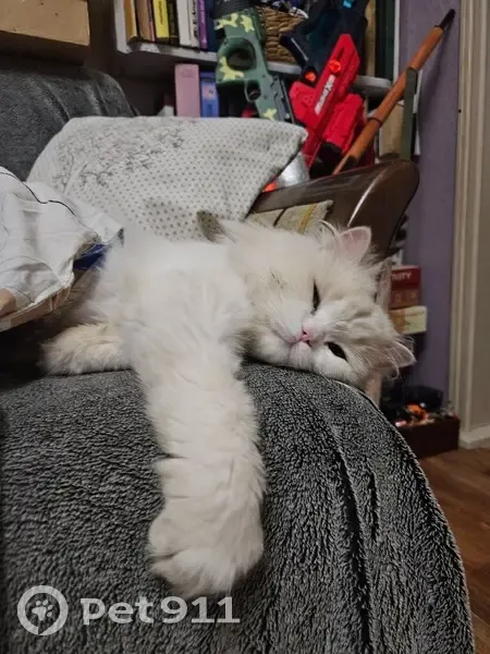 Кот Шотландский длинношерстный Белый пушистый , из-за того, что лазит по кустам, кажется что он неухоженный и поэтому хочется его забрать и ,как вам кажется, спасти! НО кота любят и ждут дома! Каждый день вычесывают, моют после похода в лоток зад! Он кастрирован! Добрый кот, который любит ,когда его гладят и дают вкусненькое. Поэтому гулять у магазина он гуляет. И все знают в поселке, что кот ЧЕЙНЫЙ! Не брошен. Дома ждут дети. Которые очень сильно расстроены. Этот кот был им подарен!!! Верните Есенина домой, если у вас есть человечность и доброе сердце!