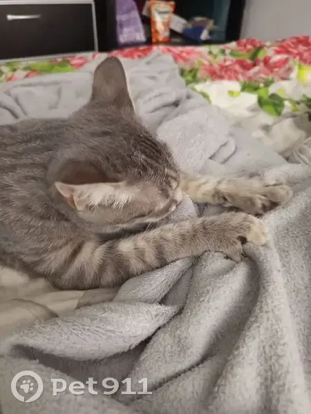 Серая кошечка по кличке Ириска, окрас с полосками, на лбу можно увидеть букву М. Не особо ласковая. Пришлось оставить на даче родственникам, те не уследили. Возраст примерно 6-8 месяцев. (Фото были сделаны ранее, поэтому могут отличаться от моей кошки на сегодняшний день.) Очень надеюсь что она найдется...