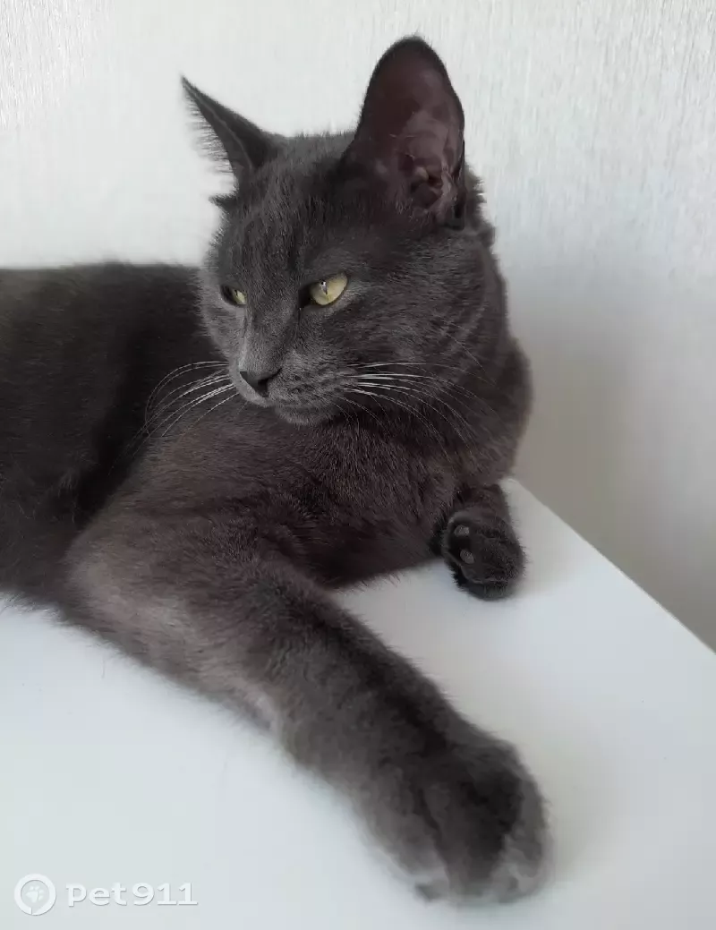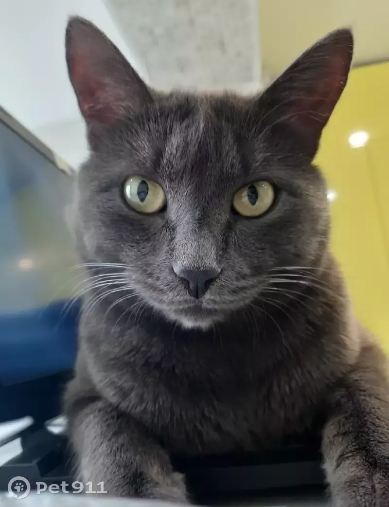 Кот домашний, не гуляет. Цвет шерсти серый, глаза жёлтые; кастрирован. Подобрали котёнком дворянин))))