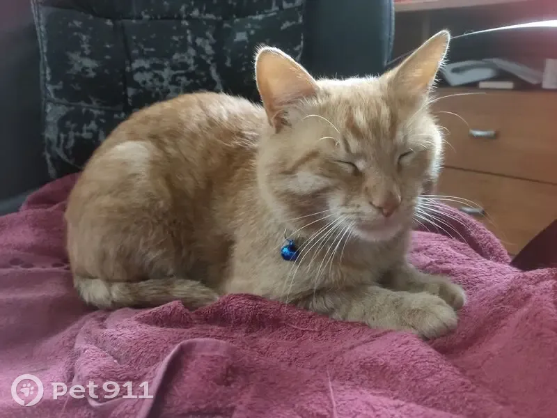 Рыжий окрас, глаза янтарного цвета, худощавый, на кличку Бурбон откликается, на шее синий ошейник. Возраст Бурбоши полтора годика. Не кастрирован. Очень ждем Бурбошу дома !