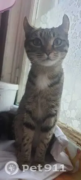 Возраст 7 месяцев, не стерилизованна. Окрас - полосатая, коричневая с рыжим, на грудке белое пятно. Глаза светло-зелёные Ушки слегка заснуть назад. Очень ласковая, может бояться чужих людей