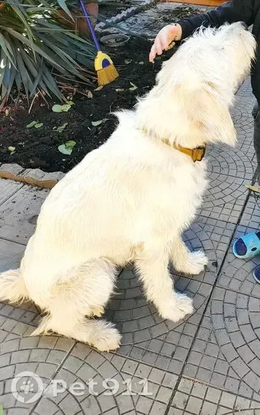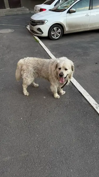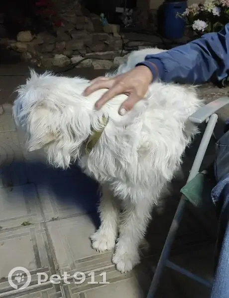 Шерсть белого цвета, пушистая, собака большая, ласковая. Выбежала из частного домовладения вечером, но так получилось, что мы заметили пропажу только утром на следующий день. Ждали, что вернётся, искали по округе, но её нет. На ней ошейник жёлтого цвета.