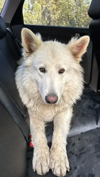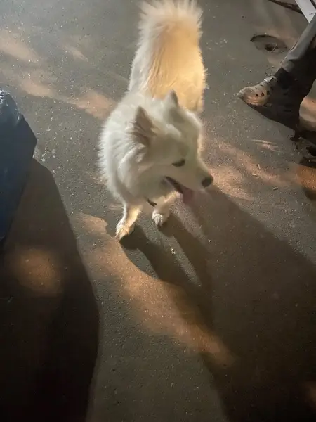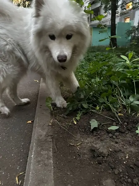 Белая/молочная Пушистая Упитанная Контактная Энергичная Активная Зимой 2020 года забрали собаку из приюта. Ей было тогда 1,5 года В полгода она сбежала из дома. Еще Полгода блуждала и попала в приют. Несколько раз убегала у нас, но всегда возвращалась. 27 июля утром убежала из дома. Сбежала через дырку в заборе.