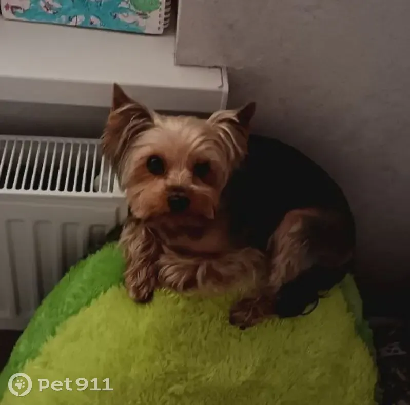 Йоркширский терьер. Светло-шерстный. Шерсть приблизительно средней длины. Особые приметы:пожилой, осталось несколько зубов, в районе таза на внутренней стороне бедра в районе таза татуировка с числами. Любит сидеть на руках.