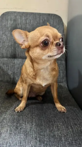Белая чихуа, 10 лет. С течкой. Была на передержке у родственников. Сбежала утром 7 сентября. Отличительная черта, куций хвостик. Прям обрубочек. Собака боится чужих. Пугается от любого шума.