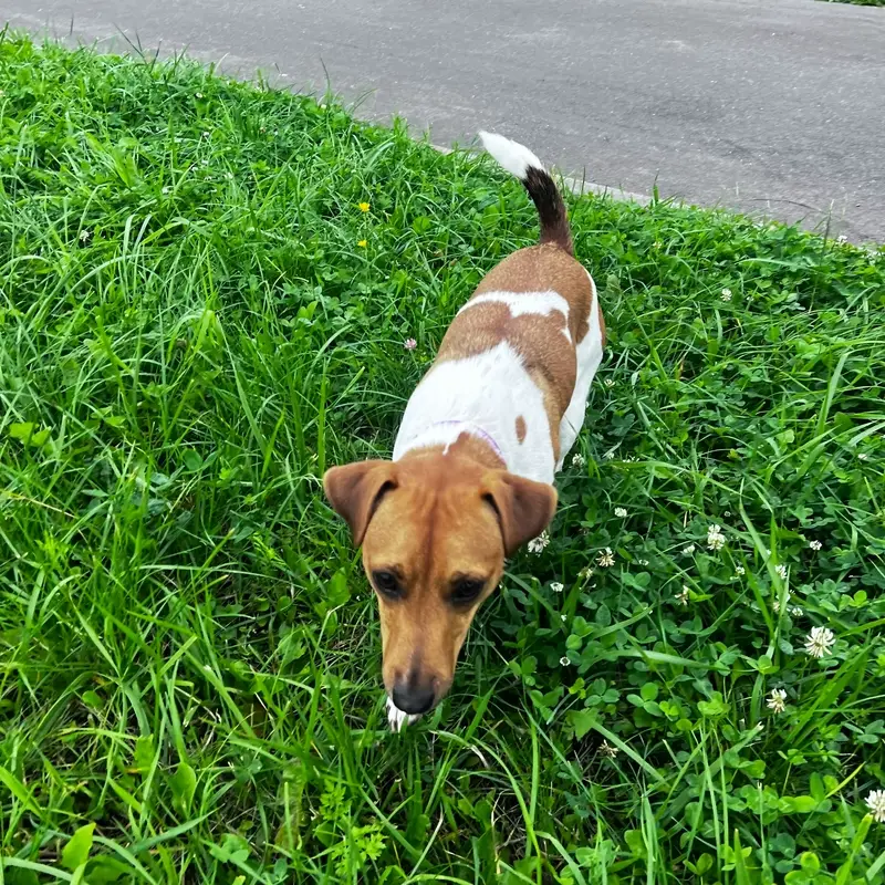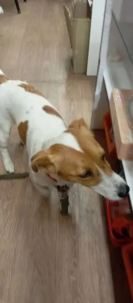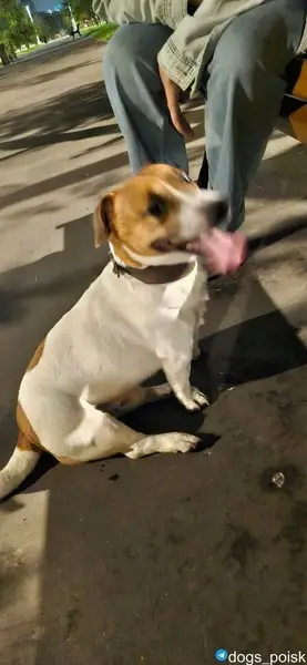 Джек Рассел терьер.Окрас рыже белый.Девочка 4 года .Клеймо клуба СКОР .Привитая,очень ласковая.Любит играть с мячем.Пропала в районе м.Рассказовка,м.Переделкино. Район ЗАО.По всей видимости была украдена. На голове на макушке рыжее оваль ное пятно.