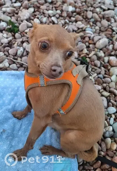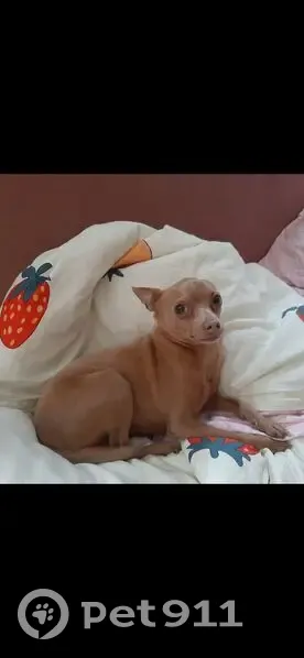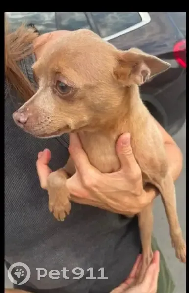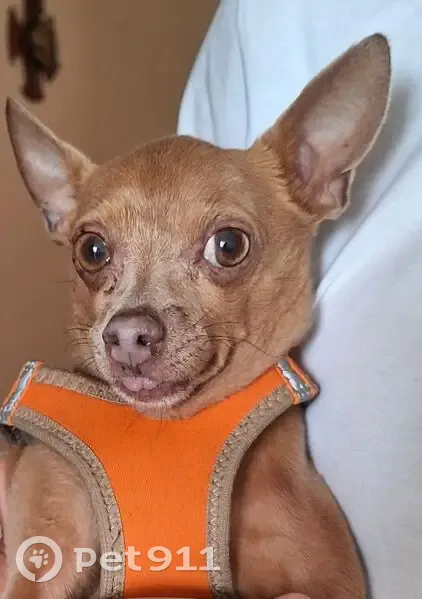 Русский той, мальчик, возрастной, 10 лет. На спине широкая темная полоса. Окрас ближе к рыжеватому. Есть клеймо под лапкой. Очень контактный. Крупный для своей породы, 3 кг. Красивый и умный