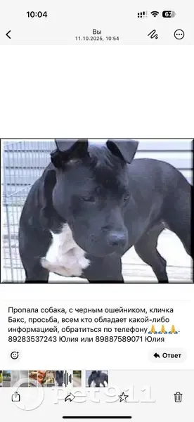 На шее черный ошейник, длинный не купированный хвост, белое пятно на груди. Пес загулял, уже через два дня его видели в ст.Филимоновская, сейчас оттуда он двинулся в сторону Солнечнодолька или Изобильный. Просьба всем кто его видел, придержать и сообщить по номеру, пес чуть добрее кошки, прибивается к стаям бездомных собак, а затем продолжает движение снова. Последние фото, это когда его забрали из тех условий в которых он находился((((((