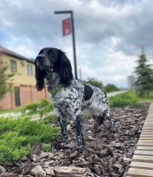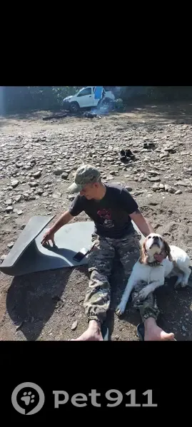 Белый окрас с коричневыми ушами , и возле хвоста коричневое пятно, ошейник кожаный коричневый, пошли по лесу гулять убежал в сторону и больше не вернулся