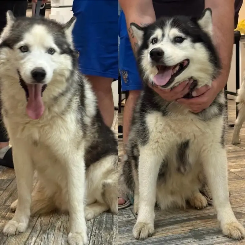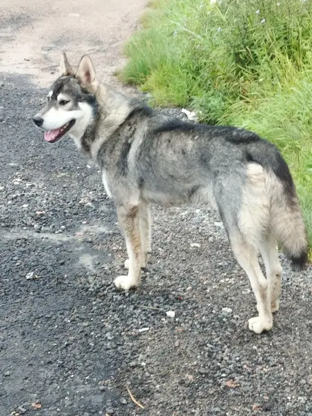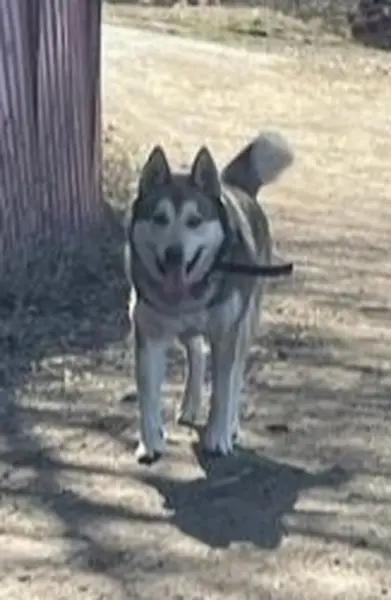 Окрас серо-чёрно-белый. Глаза голубые. Ошейник тканевый чёрный. Добрый по характеру. Погнался за дикими животными в сторону СНТ Хлыново( Москва, Троицкий район, рядом с Подольском)и мы его не смогли догнать. Убежал с поводком-рулеткой. Ну а дальше, видимо, заблудился, иначе бы вернулся. Всегда возвращался. Очень любит свой дом.