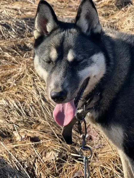 Пропал кобель породы Хаски. Окрас чёрный с белым, голубые глаза, сорвался с цепи и убежал, так как рядом гуляли стая собак, возможно сучка, так как сильно лаял в ту сторону и скулил.