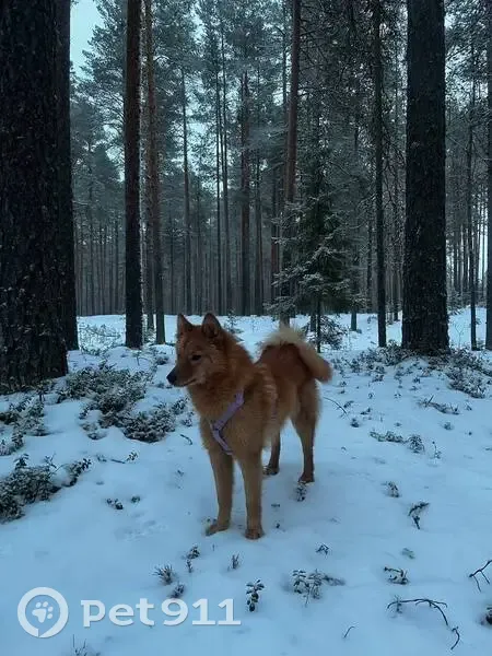 12.04.25 пропала карело-финская лайка. В районе Ангарского перевала (между Ангарским перевалом и Лавандой). Кобель, кличка Рэй. На собаке была сиреневая шлейка (на фото) и электронный ошейник.