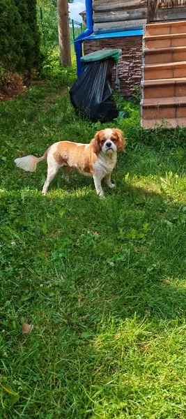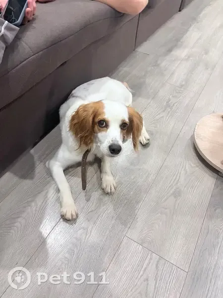 Бело-рыжий, людей любит, но может быть напуган, убежал вместе с поводком, на нем белый ошейник. В последний раз видели в районе мукомольного завода в г. О. Луховицы