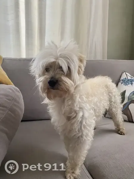 Мальчик, порода похожа на мальтипу, очень умный, добрый и ласковый. Бежал по дороге среди машин. Состояние: был очень напуган и грязный. Собачка домашняя, ухоженная.