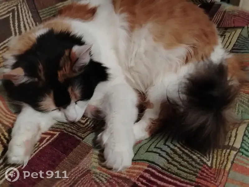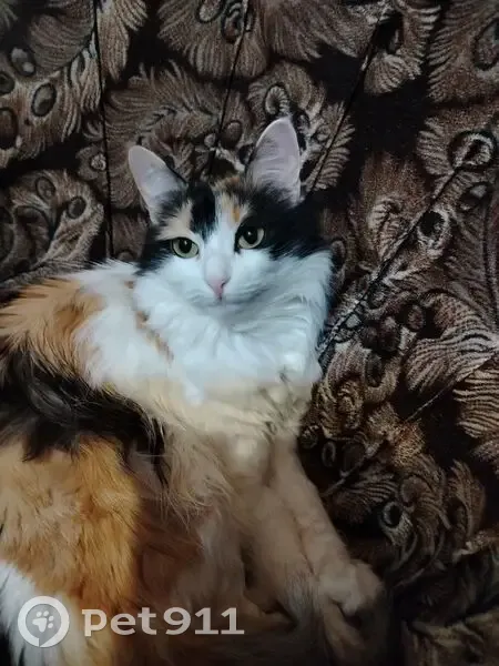 Пушистая, трёхцветная кошечка, пузико в основном белое, но есть небольшое рыжее пятнышко, на спинке рыжее пятнышко в форме сердечка, мордочка белая с чёрным окрасом. Кошечка стерилизованная, привитая, очень пугливая, бриться громких звуков. Мусенька, по всей вероятности, выбежала на балкон, когда выходили. К балкон у пристроен магазин, поэтому под балконом есть крыша, она часто гуляла по этой крыше, но всегда возвращалась.