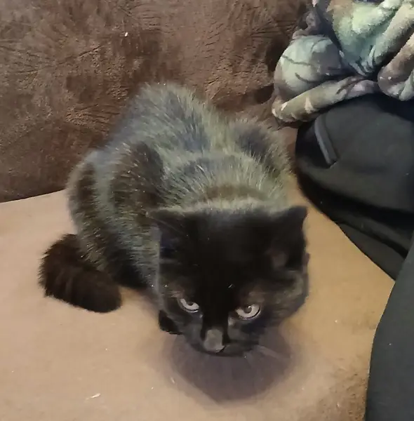 Окрас чёрный, на груди маленькое белое пятнышко, сама маленькая (либо подросток, либо карликовая порода) очень контактная, идёт на руки, трётся об ноги, но очень агрессирует на другую кошку. Покушала немного, хотя очень худенькая, когда указали на лоток-сходила и по-большому и по-маленькому. Очень хорошая девочка, надеюсь она потерялась, а не нарочно кто-то выкинул.