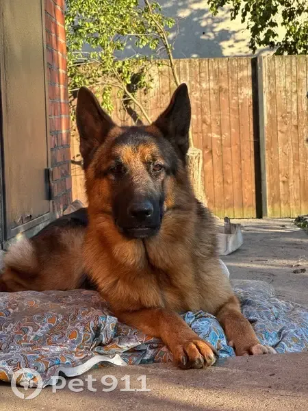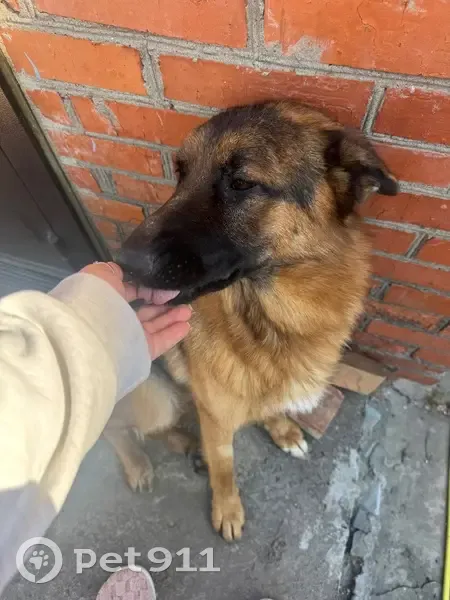 Найдена на территории промзоны Тураево, г.Лыткарино. Адекватный, добрый. На шум и лай собак не реагирует. Немецкая овчарка, кобель, возраст около года, только сменились зубы. Чепрачного окраса. Белый носочек немного на левой лапке.