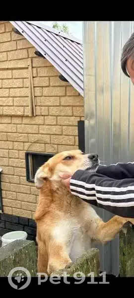 Пес рыжий, с белым животом и лапами. Глаза коричневые, начинают немного слепнуть. На правом ухе есть небольшая порваная рана. На псе была надета шлейка, как на фотографии 1. Потерялся при походе в лес, сорвался с места и убежал куда-то вглубь.